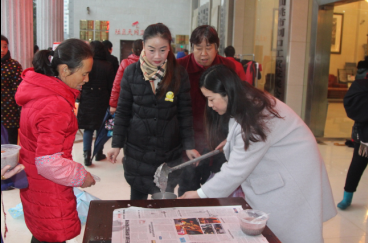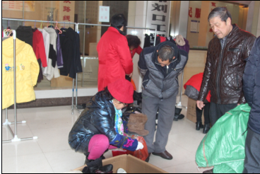 2017年1月5日,刘口社区、仙桃义工在社区办公楼前开展“腊八粥”、爱心衣服免费领取活动。