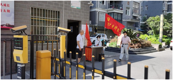 | 2021年8月,面对严峻的疫情形势,社区工作者在出入口进行卡口值守,对进入人员进行管控 |