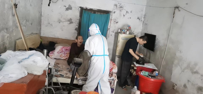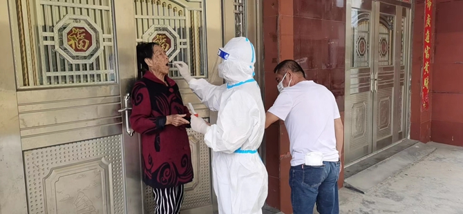 刘口社区携手医护人员为辖区老人,年迈老人等上门做核酸采样