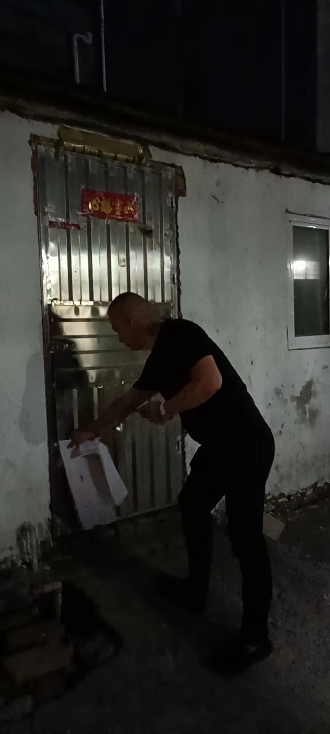 2022年8月14日,刘口社区工作人员整治背街小巷何李路19巷牛皮廯。