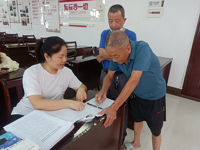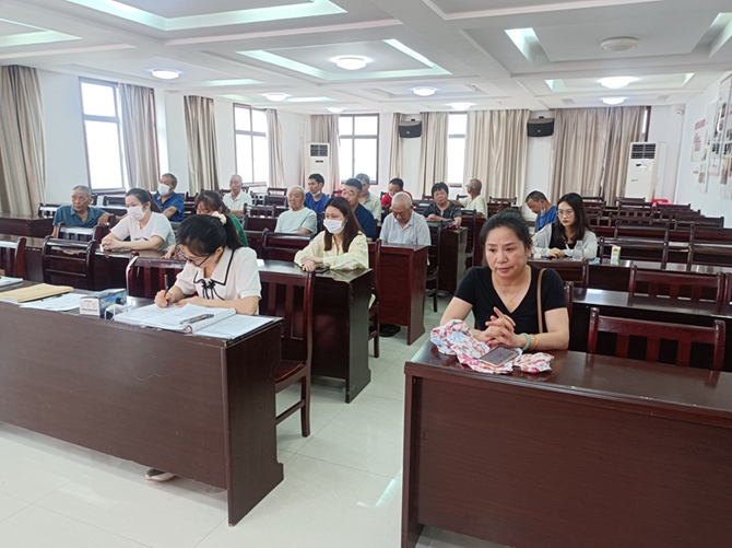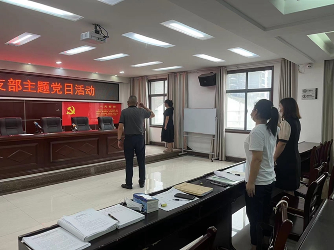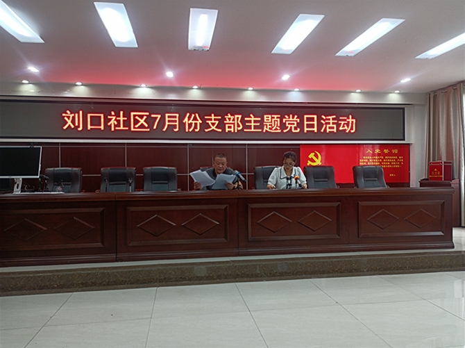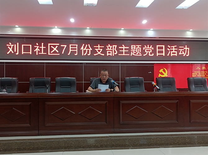 2022年7月28日,刘口社区党总支召开7月份支部主题党日活。第一项议程:全体党员佩戴党员徽章,交纳7月份党费,党总支书记李建军同志通报到会情况,由胡杏同志带领大家重温入党誓词。