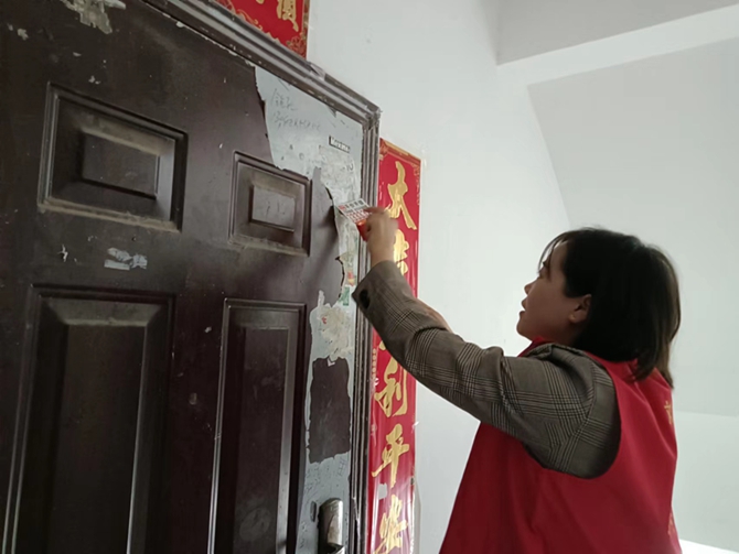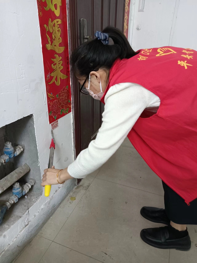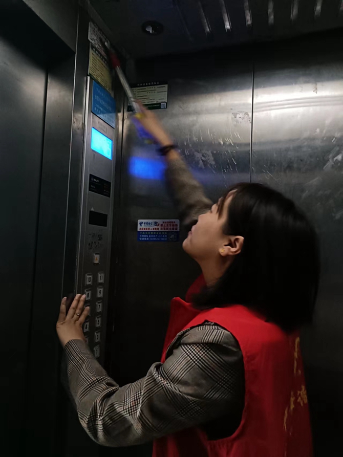 2022年9月25日上午,刘口社区工作人员开展文明城市创建活动,对辖区居民楼内牛皮癣进行清理。