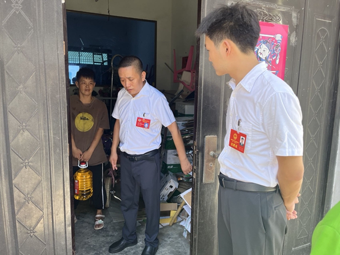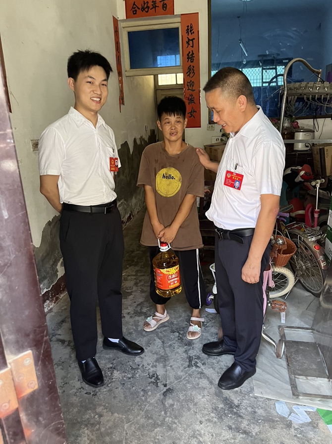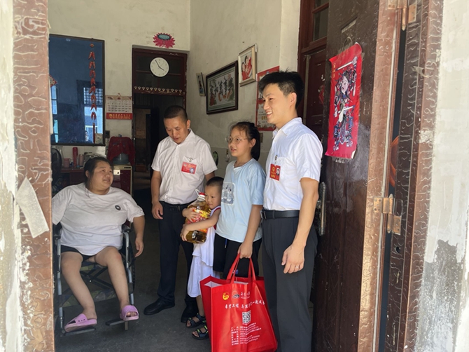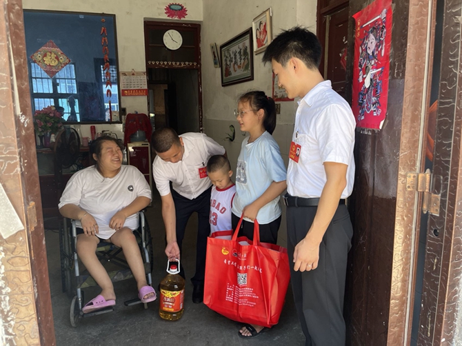 2022年8月5日下午,市政协委员柳咏飞、市人大代表李燃到刘口社区残疾人李月琴、朱玲家走访慰问,并给他们带来生活物资和儿童玩具等。