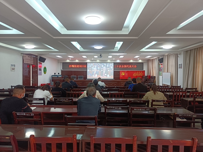 2022年10月16日 上午10点,刘口社区党总支书记李建军组织社区在家党员现场观看以及在外党员通过手机电视观看中国共产党第二十次全国代表大会直播。