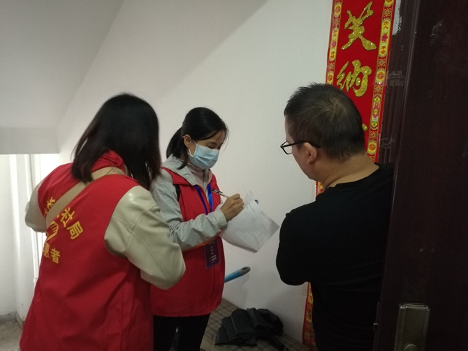 2022年10月9日,刘口社区六联六包单位市人力资源和社区保障局和汉江高中党员同志们开展“敲门行动”,摸排三类人员(新疆、西藏、四川、甘肃、宁夏、内蒙古等六省人员、中高风险区域返仙人员以及三伏潭、胡场籍人员)进行摸排。并查看居住人员健康码以及核酸检查情况。要求不漏一户,不落一人。