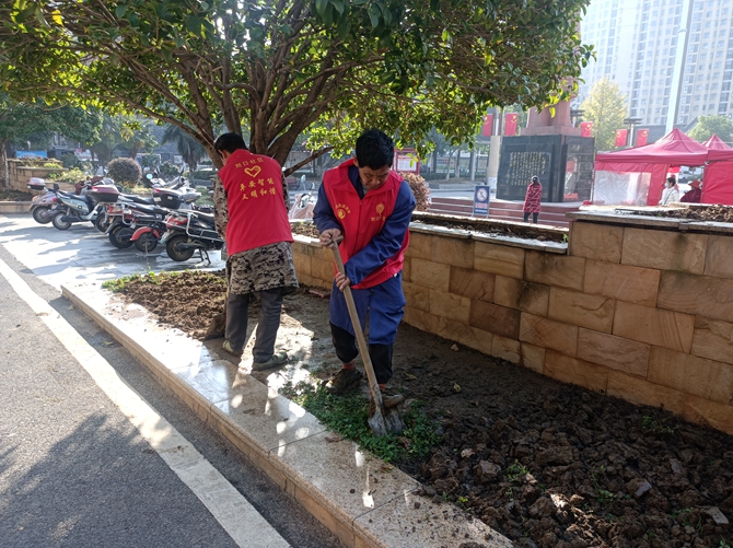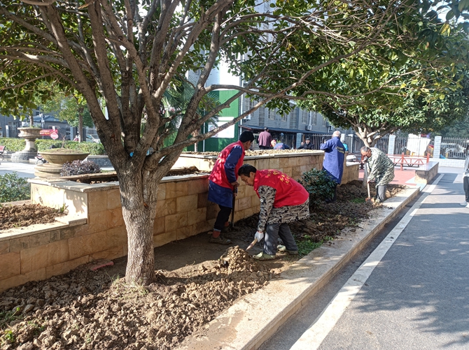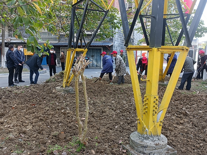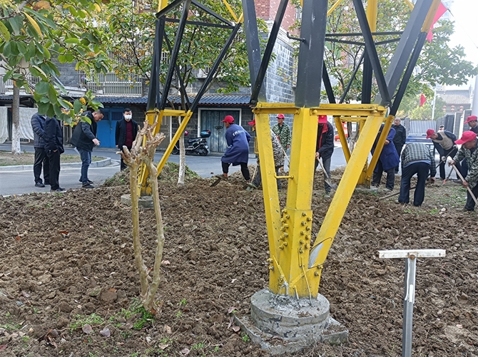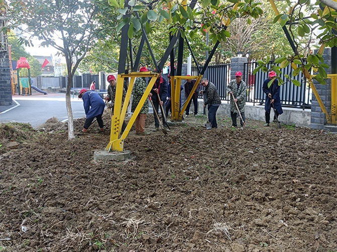 2022年11月15日。刘口社区居民共同谋划,共同参与社区项目建设,开展“美好环境与幸福生活共同缔造”活动之绿化带项目建设,刘口社区共同缔造工作专班到现场进行指导,社区居民一起进行建设,并出谋划策,建议绿化带种植好后安装竹篱笆。