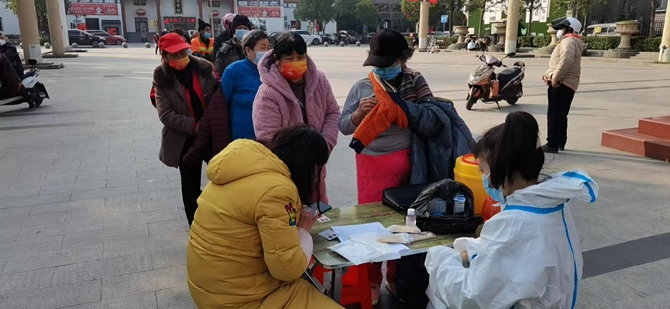 刘口社区联合沙嘴卫生服务中心为社区60岁以上老人进行疫苗接种服务。