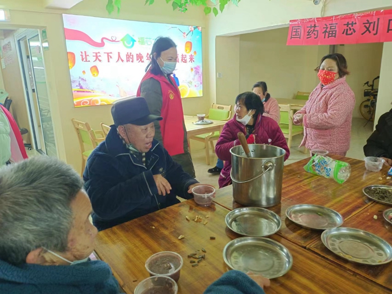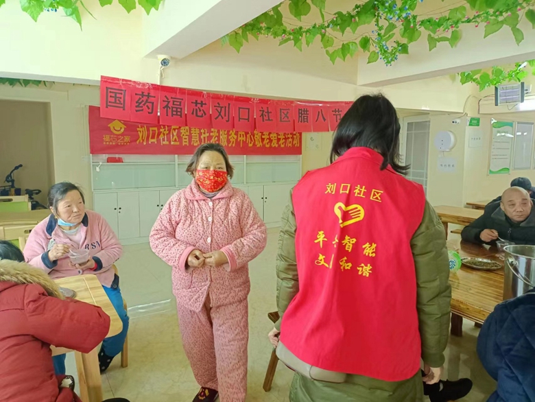 2022年12月30日,农历腊月初八,刘口社区联合国药福芯开展"迎新春,送腊八粥"活动,为社区老人送上一碗热腾腾的腊八粥,营造美好环境与幸福生活的氛围。