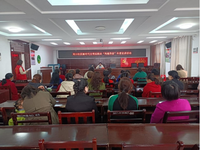 2023年3月8日,刘口社区组织辖区妇女同胞参加“美丽女神节,情暖刘口人”三八妇女节活动,宣传“两癌”筛查免费政策、二十大会议精神等学习内容。