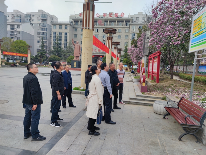 2023年3月8日下午,省财政厅领导调研综合防灾减灾示范社区刘口社区,办事处副主任朱旭光陪同。