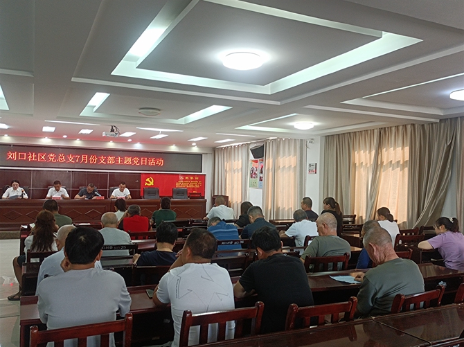 2023年7月28日,刘口社区党总支召开7月份支部主题党日活动