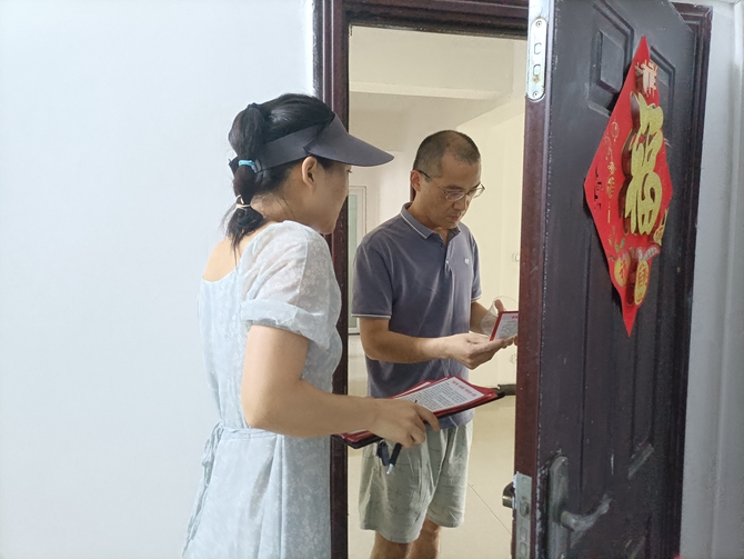 2023年8月8日,刘口社区工作人员陪同驻村机关干部开展户户走到活动。收集群众问题及意见,并发放“美好环境与幸福生活共同缔造”小知识,并进行相关知识宣讲。