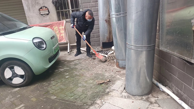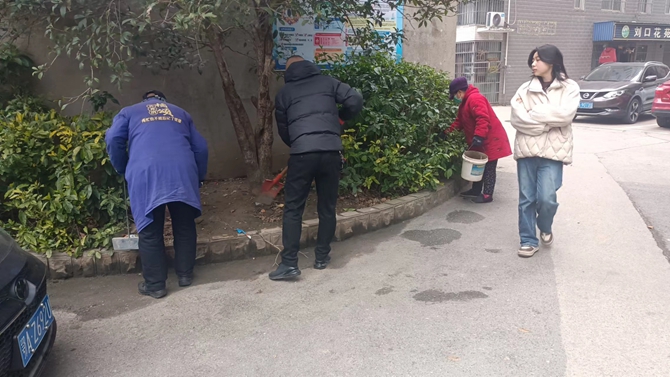 2024年1月7日上午,为迎接创城第四季度评测,刘口社区工作人员在社区开展环境卫生大整治,打扫楼道卫生、清理门前屋后杂物以及铲除“牛皮癣”小广告。