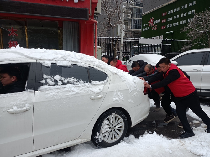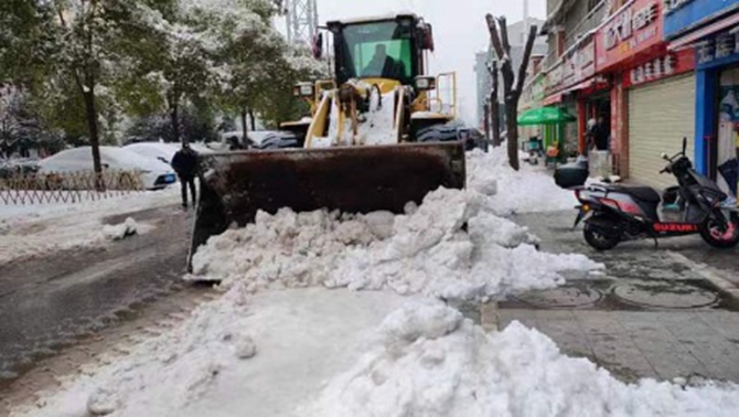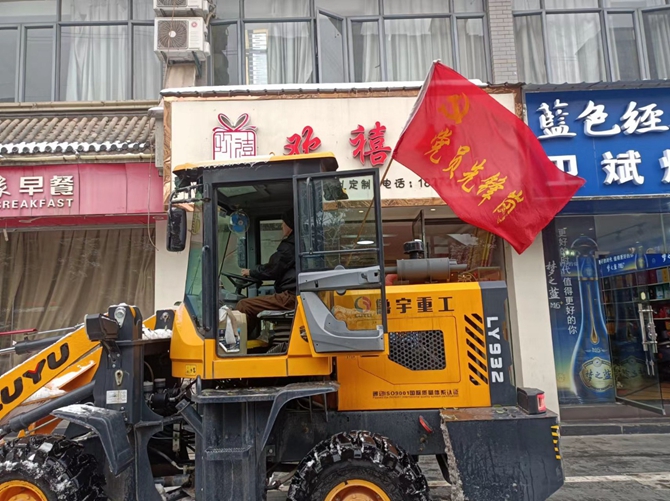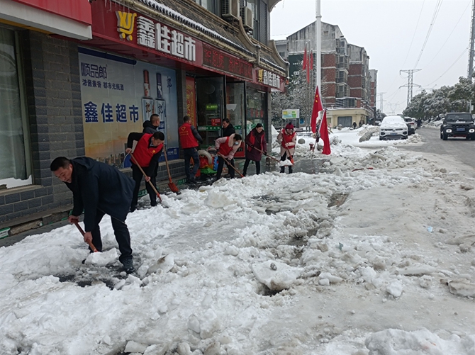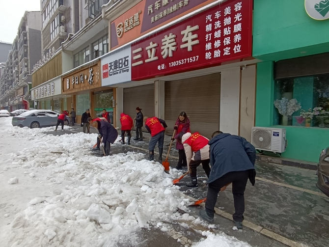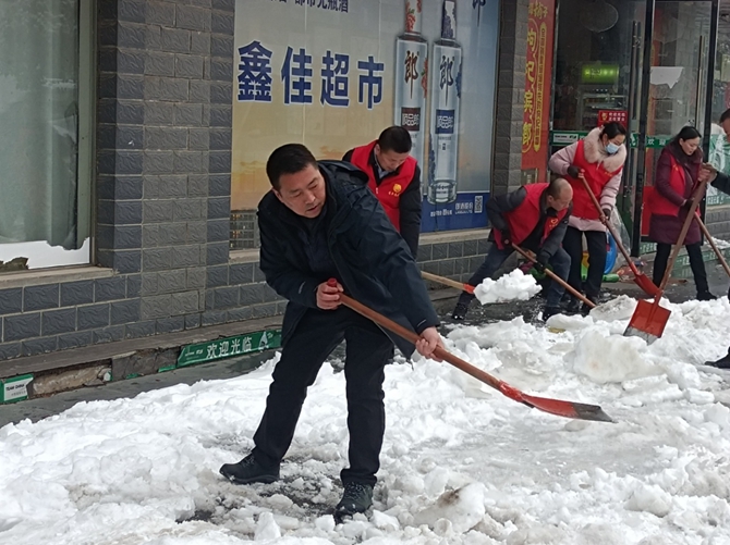 刘口社区驻村领导顾正国,党总支书记李建军带头开展扫雪铲冰活动