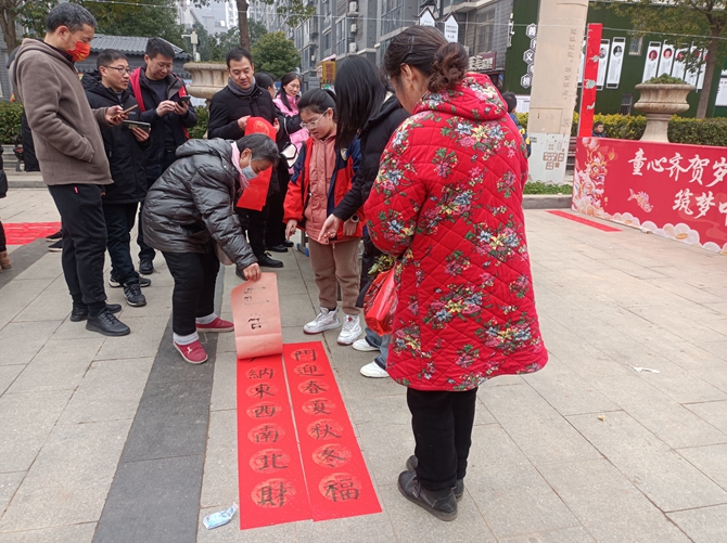 为进一步继承、弘扬祖国优秀传统文化,传达浓浓温情,营造欢乐祥和、健康文明的节日氛围,仙桃市实验三小主办,刘口社区协办于2024年1月30日,在刘口社区广场举行2024年“少年红色轻骑兵——迎新春送祝福”的义务送春联活动。活动现场小小书法家们奋笔疾书,为大家书写了一幅幅精美绝伦满含祝福的春联,居民朋友们喜气洋洋,也都感谢我们小小书法家们的辛勤付出。