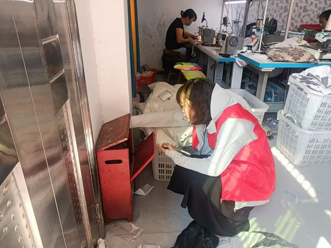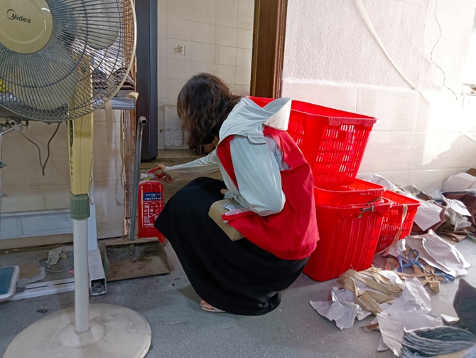 为切实做好节假日期间消防安全工作,有效防范和遏制重大火宅事故发生,2024年9月26日上午刘口社区工作人员,对辖区各服装加工作坊进行国庆节前安全生产检查。