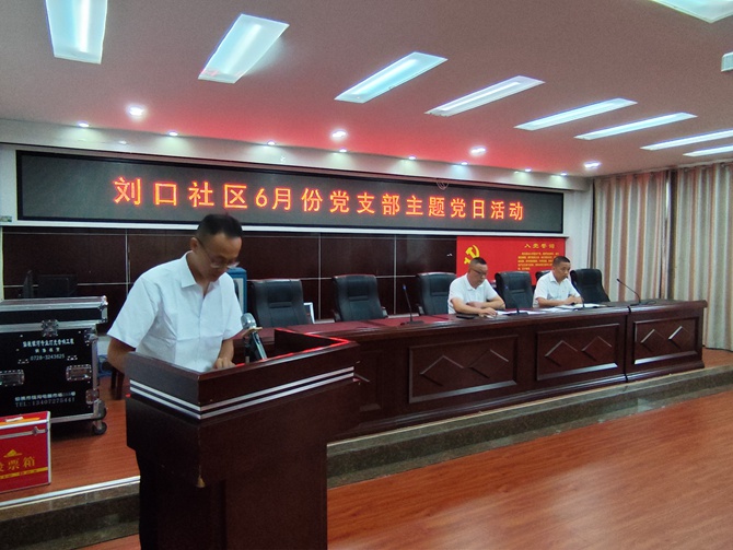2024年6月28日,刘口社区党总支召开6月份党支部主题党日活动。 会议第一项:落实规定动作。