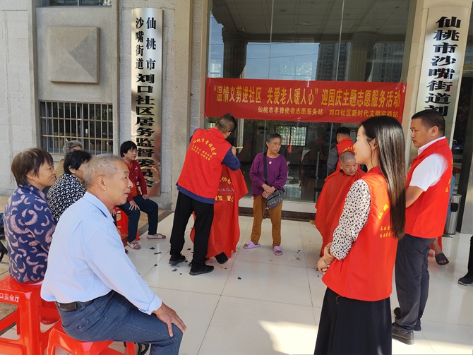 2024年9月24日,刘口社区联合仙桃市孝雅使者志愿服务站开展"温情义剪进社区 关爱老人暖人心"迎国庆主题志愿服务活动。