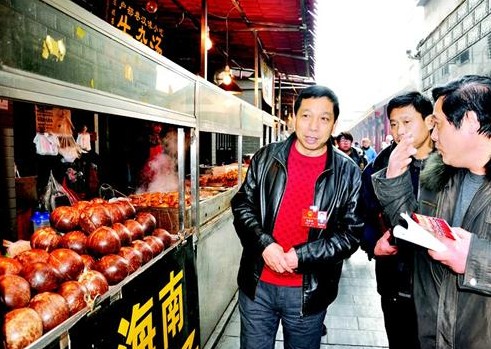 湖北日报讯 图为:朱腊章(左一)到户部巷取经。(记者 张卫华 摄)