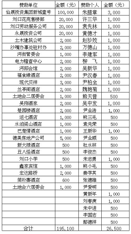 刘口社区沔街周年庆文艺汇演赞助单位及个人