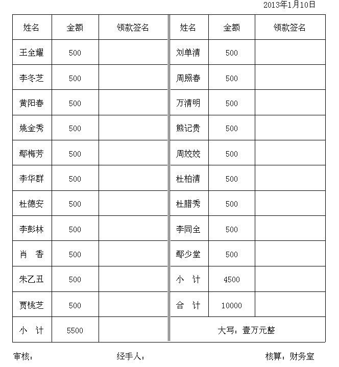 刘口社区2012年80周岁以上居民补贴