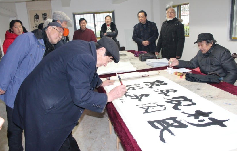 2月24日,社区书画室创作负责人刘长青老师,诚邀中国美术协家会员、北京书画学院教授余昌宇先生,京珠高速公路技术总监、享有国家津贴艺术家张武茅先生,仙桃市职业学院美术院院长张立学等仙桃籍艺术家50余位举办迎春书画会。艺术家们现场共同创作国画《盛世长青》及长达30米书卷《醉美刘口》,同时各位艺术家还挥毫泼墨即兴创作了50多幅作品。此次书画会受到了各界媒体的高度关注。