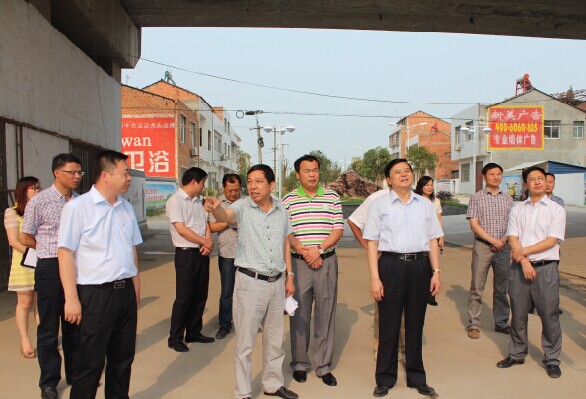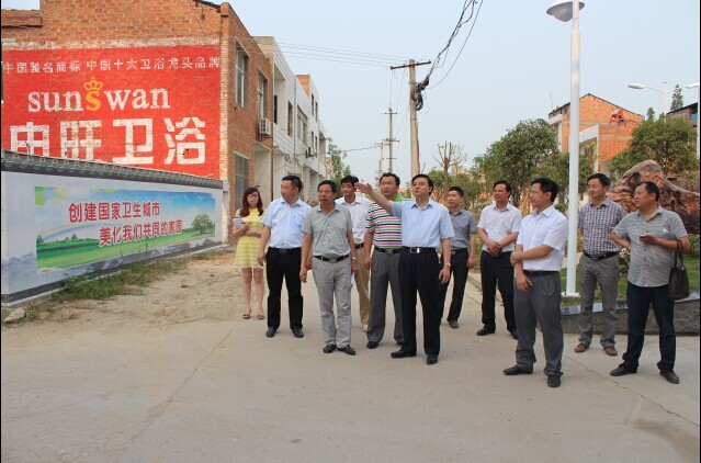 图为冯书记一行在刘口社区龙须沟实地检查督办创卫工作 |