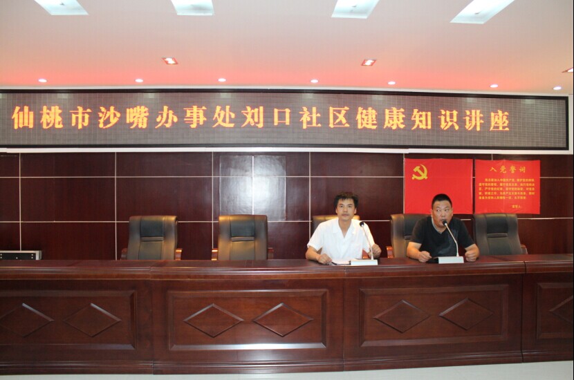(通迅员 吴新华)为了更好地为刘口社区居民服务,普及健康知识,8月2日上午9点,刘口社区邀请卫生室的李勇医生在社区五楼大会议室为居民们开办健康知识讲座,为了搞好这次健康知识宣传服务活动。刘口社区还和仙桃疾控中心联系,精心制作了预防慢性病的展板十多幅,散发健康保健知识传单2400多份,全区共有130多名居民参加了活动。 讲座中,李勇医生多角度地为居民们讲解了健康的生活方式。讲座在"合理饮食、适量运动、戒烟戒酒、身体保健"等几方面展开,强调健康重在预防,要靠自己平时去关注,平时去投入才能获得健康,才能使我们有一个快乐健康的人生。在日常生活中须多观察自己身体状况,遵循早发现、早预防、早治疗的健康原则,这样才能使大家更好遵循良好的生活方式、远离心脑血管、癌症等重大疾病。并对夏季常见病预防和治疗进行宣传,并就夏季健康养生等问题,向社区居民做耐心细致的讲解,在讲解结束时,接受了社区居民健康知识咨询,由李建军,柳飞维护秩序,许多老年居民提出了自己身体的一些问题,李勇医生一一给予解答,现场接受社区居民健康知识咨询,为社区居民测量血压等,现场气氛十分热烈。活动取得预期效果,受到了社区居民的一致欢迎。 讲座结束后,许多前来听课的居民都显得意犹未尽,希望社区以后多举办此类健康讲座。