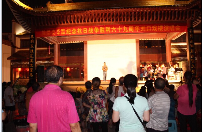 8月15日晚,在刘口社区戏楼仙桃市文联和沔街艺术团联合举办“纪念抗日战争胜利69周年”文艺演出。