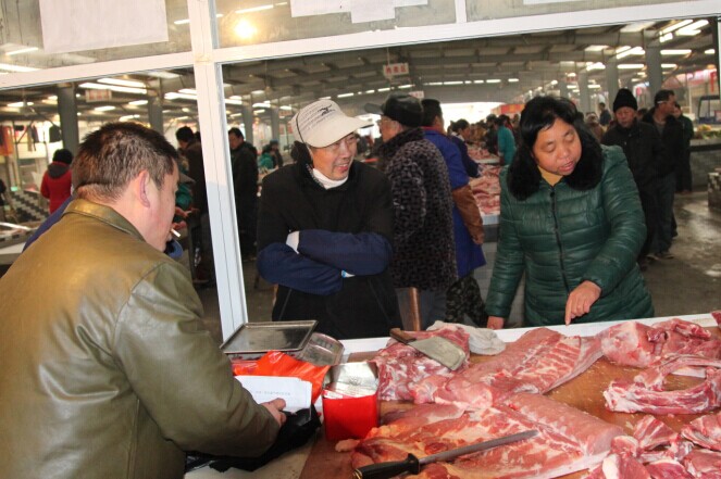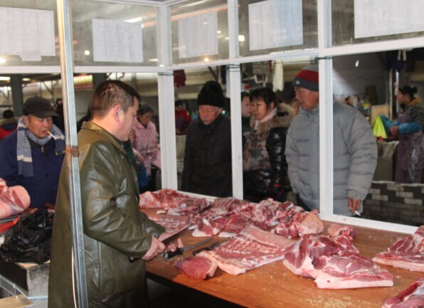 春节将至,仙晟投资集团为刘口社区居民,每户供应10斤鲜肉。(图为居民高高兴兴领取鲜肉情景)