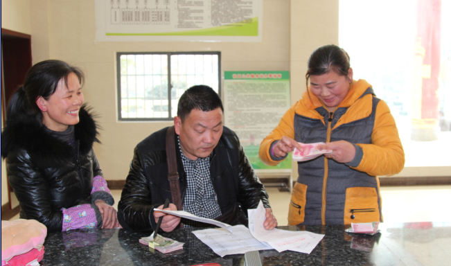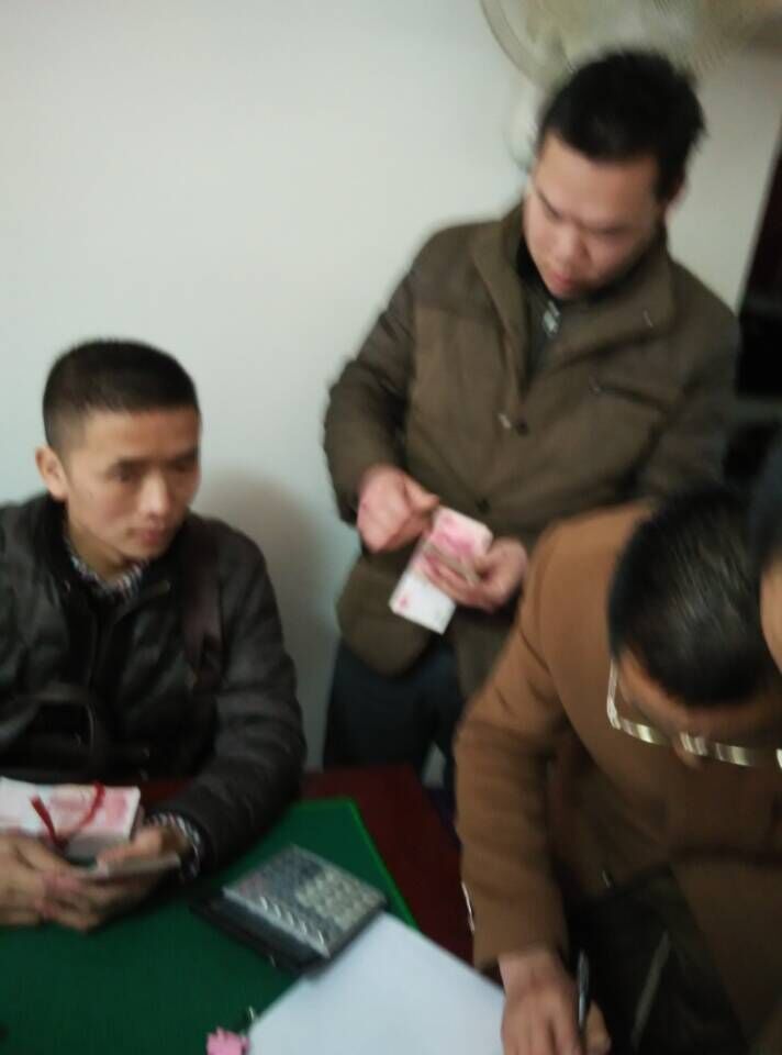 2月10日下午,社区居委会分发2014年度居民股金分红款。