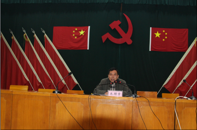2015年3月18日,湖北省人大代表、刘口社区党支部书记朱腊章同志,赴京山县委党校在京山县2015年连任村党组织书记培训班授课。