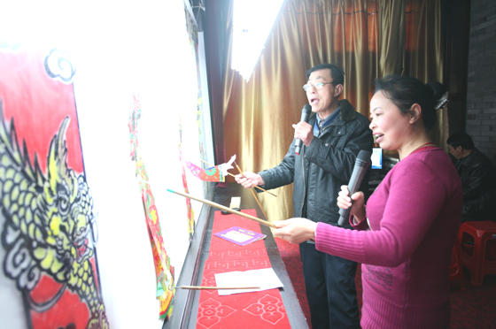刘口戏楼内,民间艺人在表演皮影戏