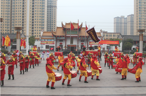 刘口村女子威风锣鼓队在社区文化广场表演节目