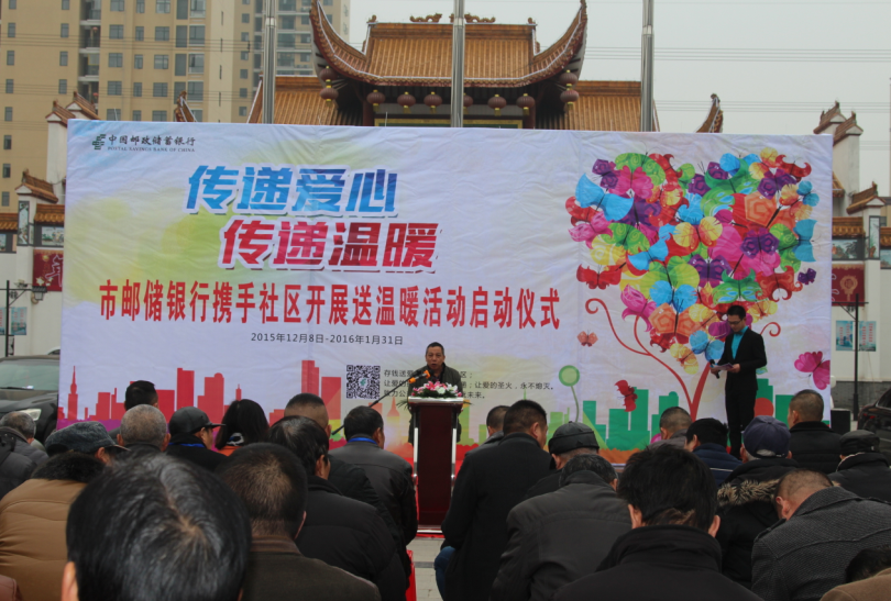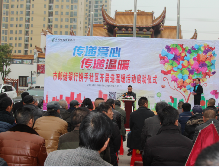 12月8日上午,市邮政储蓄银行携手刘口社区开展送温暖活动。