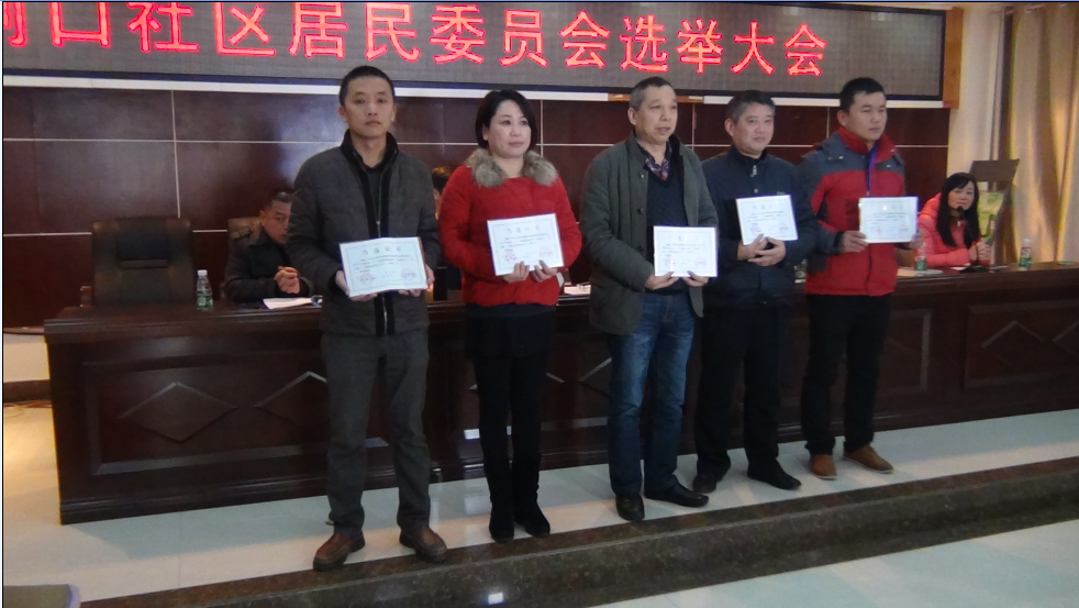 12月8日上午,在社区五楼会议室 根据《中华人民共和国城市居民委员会组织法》、《湖北省社区居民委员会选举办法(试行)》,经本社区选民投票选举,下列同志分别当选为本社区第二届社区居民委员会成员: