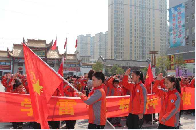 3月4日下午,在刘口社区广场毛主席纪念雕像前,学校举行了“学雷锋精神,做美德少年”活动启动仪式。在雄壮的对歌声中,少先队员高举队旗,迈着整齐的步伐走进会场。同学梦高唱《学习雷锋好榜样》,重温为雷锋同志的题词,背诵雷锋日记经典名句;学校少先队大队部发出倡议;从身边的小事做起,从爱绿护绿做起;少先队员代表纷纷在横幅上签名,作出庄严的承诺。