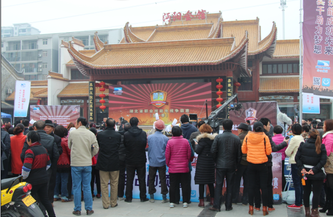 湖北省人力资源和社会保障厅主办湖北省职业技能电视争霸赛,于3月17日---3月18日在刘口社区戏楼广场举办。
