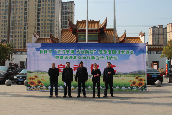 2016年4月1日上午9:30,在沔街刘口社区广场举行仙桃市“清洁家园 灭蚊防病”春季爱国卫生运动暨健康湖北全民行动宣传月活动启动仪式。